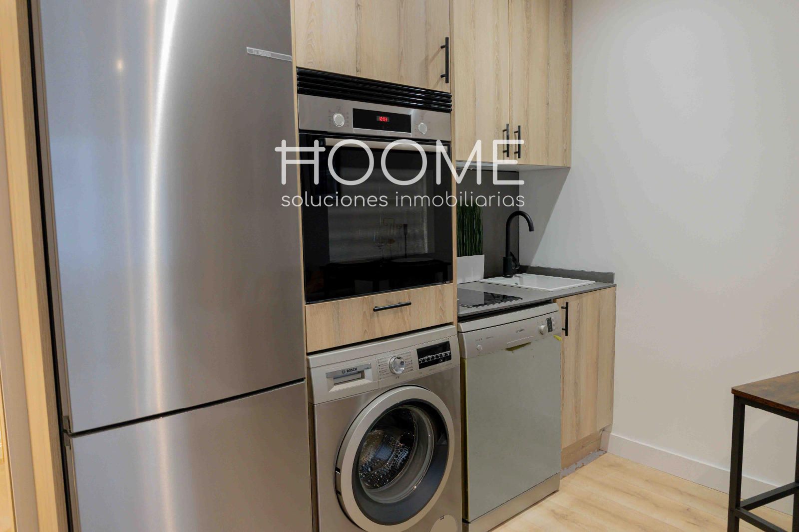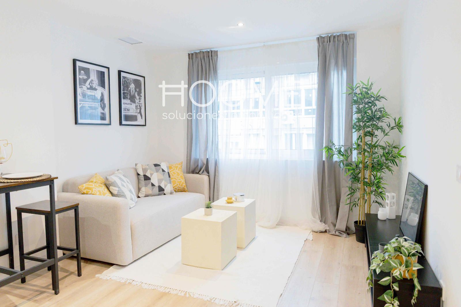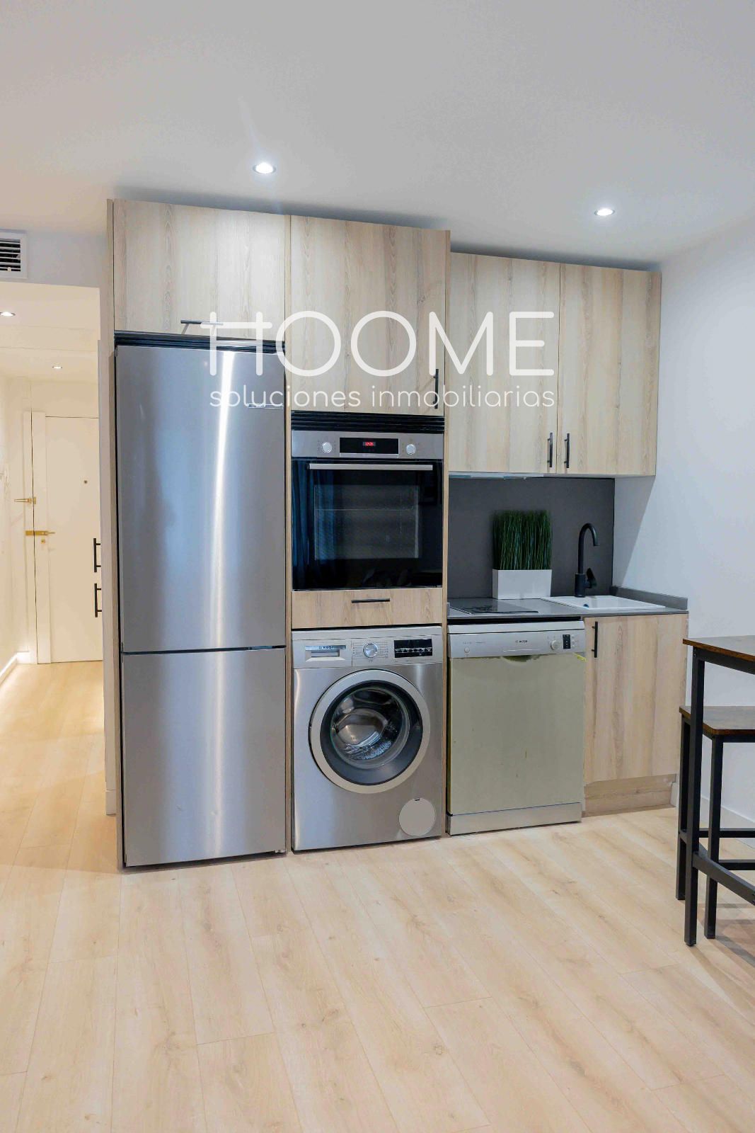 Se trata de una 5ª planta exterior muy luminoso. Además la vivienda cuenta con todos los elementos de confort, climatización por conductos. Finca en muy buen estado, con la ITE favorable. Semiamueblada a estrenar. Dispone de una distribución muy funcional, que nos ofrece un hall de entrada, un salón con la cocina integrada, 1 dormitorios independiente y un baño.